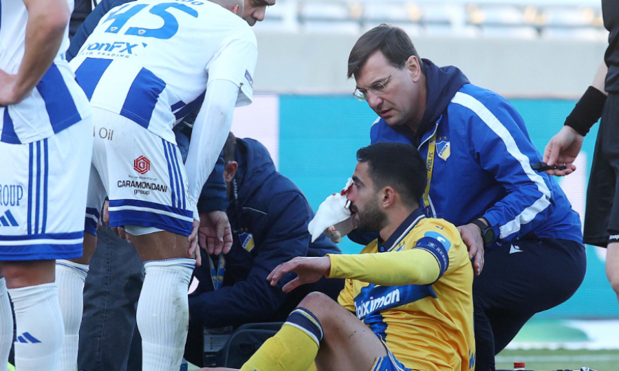 Ο αρχηγός του ΑΠΟΕΛ στον αγώνα κόντρα στην Ανόρθωση σε μια διεκδίκηση μπάλας στον αέρα με τον Φουρτάδο υπέστη διάσειση και κάταγμα ρινικού οστού και μεταφέρθηκε άμεσα στο νοσοκομείο.