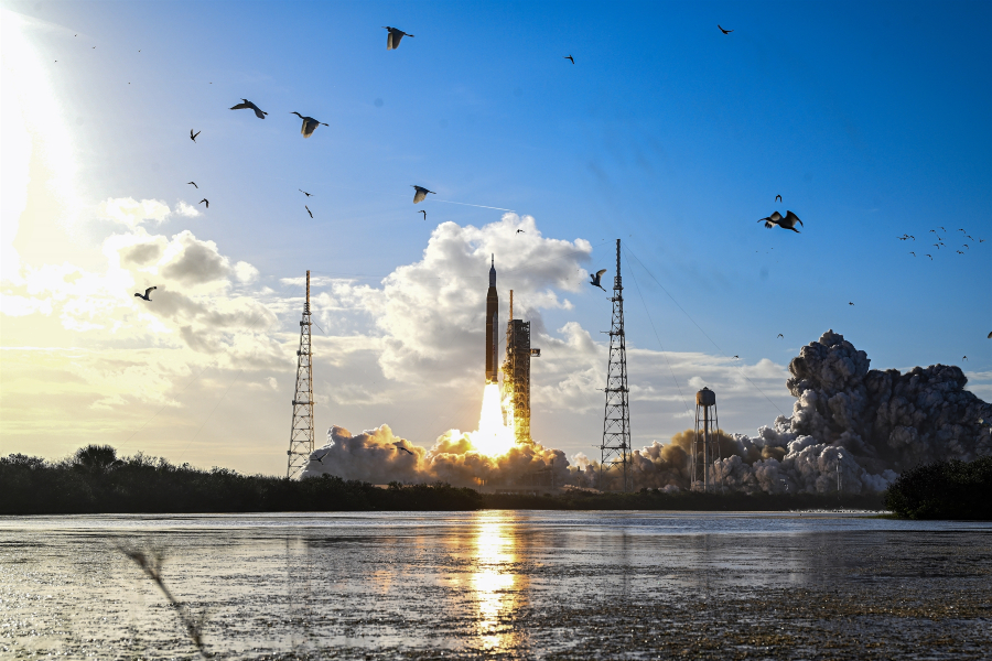 Εκτόξευση του πυραύλου που μεταφέρει το διαστημικό σκάφος «Ωρίων» με το πλήρωμα της αποστολής «Αρτεμις ΙΙ».