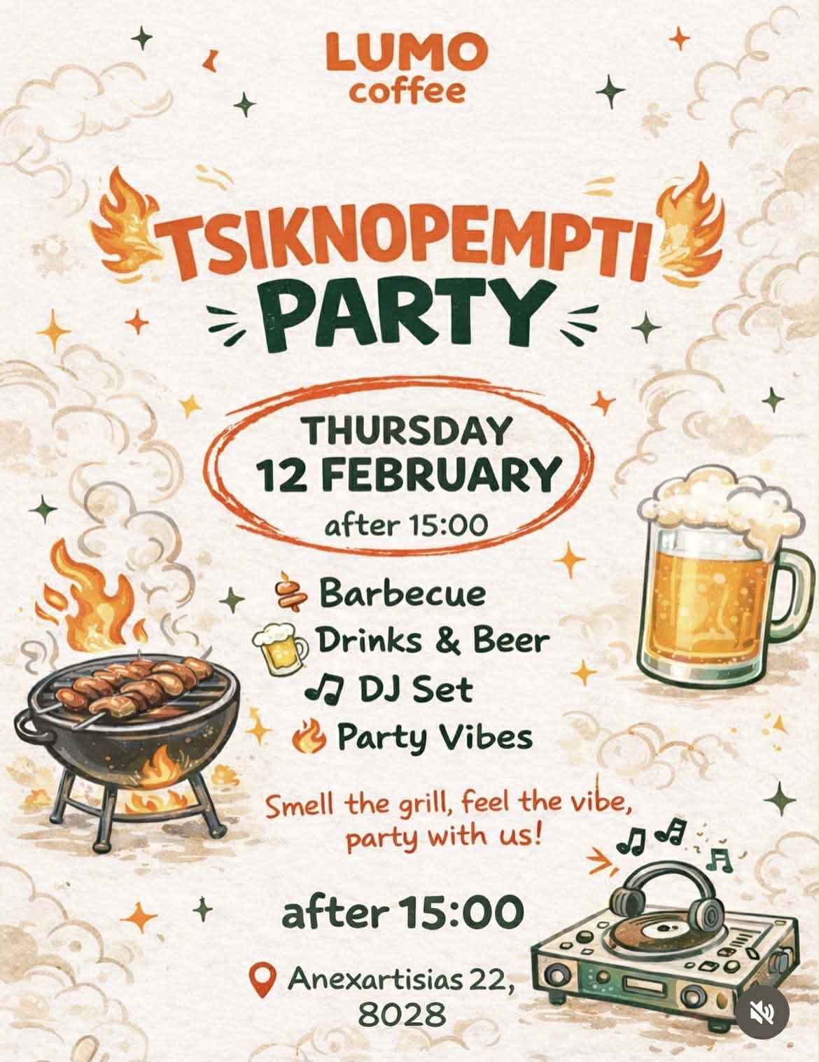 Tsiknopempti Party από τις 15.00, με barbeque, ποτά και μπίρες και φυσικά μουσικές από DJ