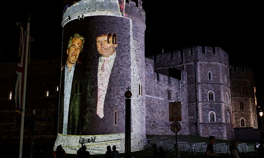 Νωρίτερα χτες, όπως μεταδίδει ο Guardian, διαδηλωτές είχαν τοποθετήσει ένα τεράστιο πανό με μια φωτογραφία του Τραμπ και του Επστάιν κοντά στο Κάστρο του Ουίνδσορ και αργότερα προέβαλαν αρκετές εικόνες των δύο σε έναν από τους πύργους του κάστρου.