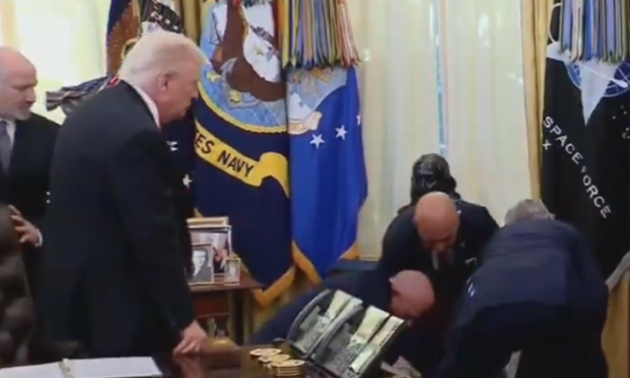 Ένας άνδρας που στεκόταν πίσω από τον Αμερικανό πρόεδρο, Ντόναλντ Τραμπ κατέρρευσε κατά τη διάρκεια συνέντευξης Τύπου στο Οβάλ Γραφείο με εκπροσώπους φαρμακευτικών εταιρειών.