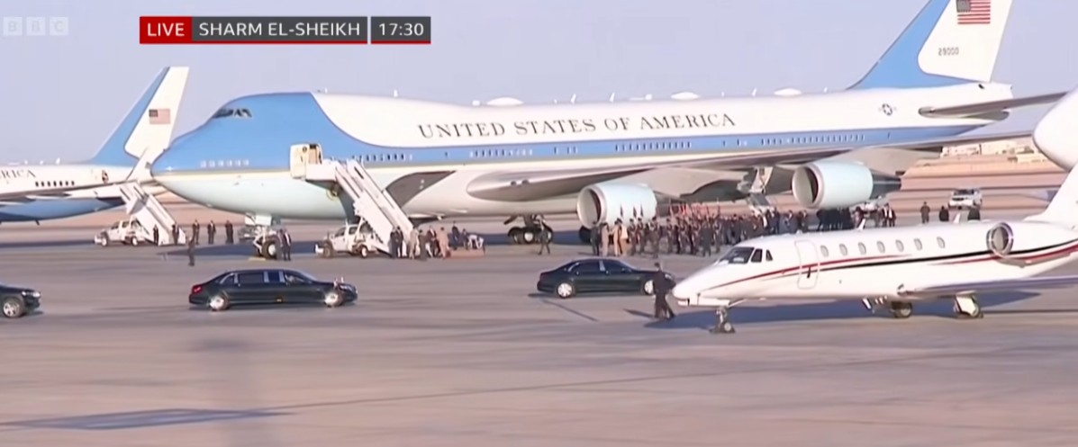 Αυτή την ώρα, το Air Force One με τον Τραμπ εισέρχεται στον αιγυπτιακό εναέριο χώρο, καθώς κατευθύνεται προς το Σαρμ ελ-Σέιχ για τη σύνοδο κορυφής για τη Γάζα.