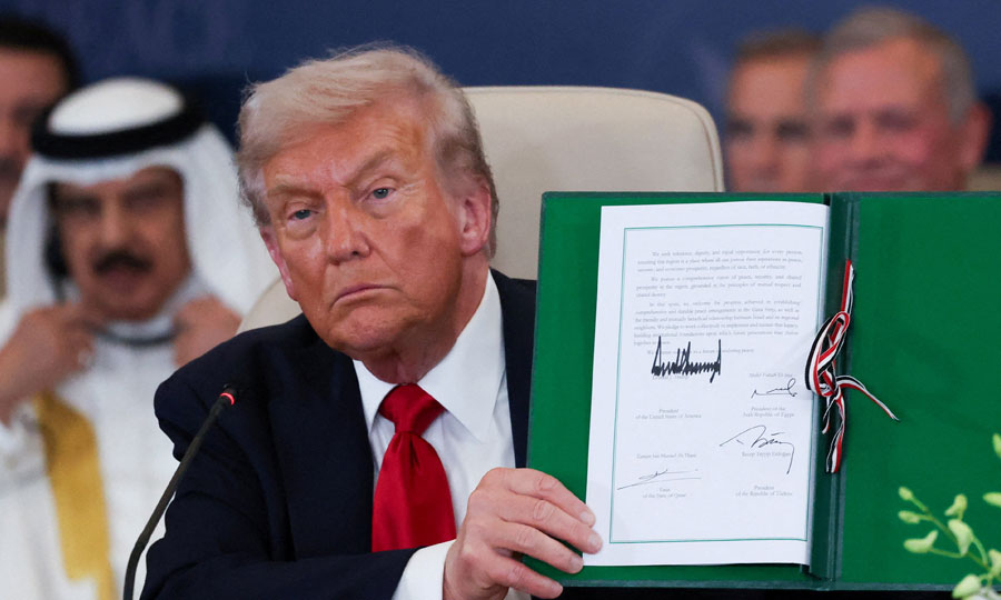 Παραμένει άγνωστο το ακριβές περιεχόμενο της συμφωνίας που υπέγραψαν ο Ντόναλντ Τραμπ με τους ηγέτες της Αιγύπτου, του Κατάρ και της Τουρκίας, στο πλαίσιο της συνόδου για την εκεχειρία στη Γάζα. Τα αιγυπτιακά κρατικά μέσα ενημέρωσης τη χαρακτήρισαν «ιστορικό έγγραφο», χωρίς ωστόσο να δώσουν περαιτέρω λεπτομέρειες.