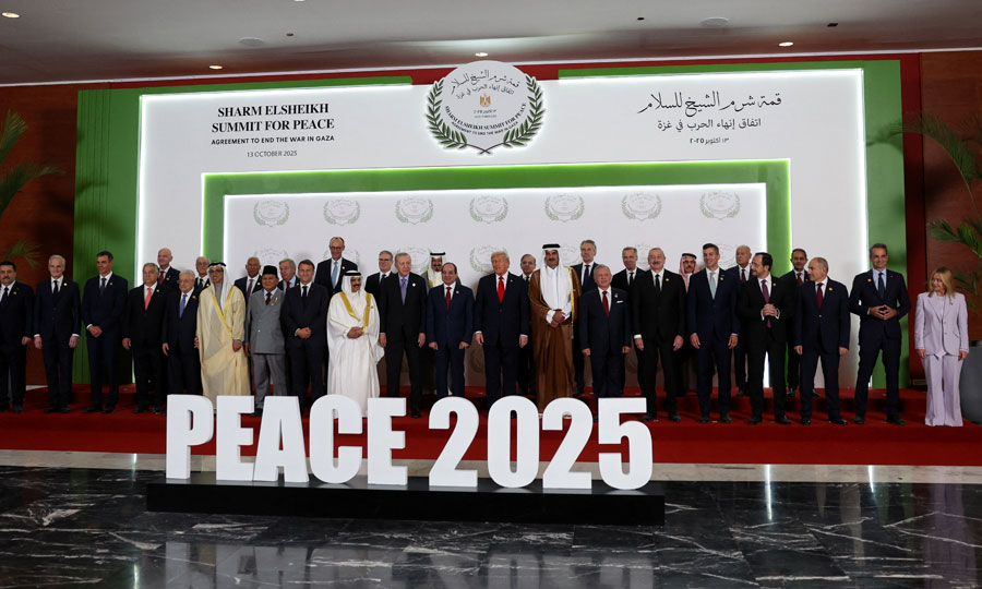 Περισσότεροι από είκοσι παγκόσμιοι ηγέτες, ανάμεσά τους ηγέτες από αραβικές και μουσουλμανικές χώρες, συμμετέχουν στη σύνοδο που στοχεύει στην επίσημη επικύρωση του σχεδίου των 20 σημείων για τον τερματισμό του πολέμου στη Γάζα και τη σταδιακή ανοικοδόμηση του παλαιστινιακού θύλακα.