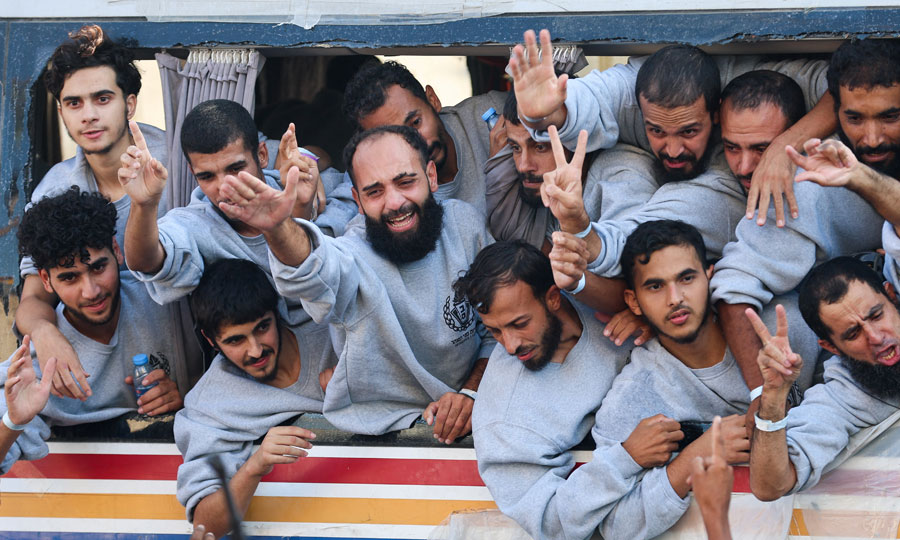 Σκηνές χαράς και συγκίνησης εκτυλίσσονται στη Γάζα, όπου απελευθερωμένοι Παλαιστίνιοι κρατούμενοι φτάνουν με λεωφορεία από το Ισραήλ στο πλαίσιο της συμφωνίας ανταλλαγής.