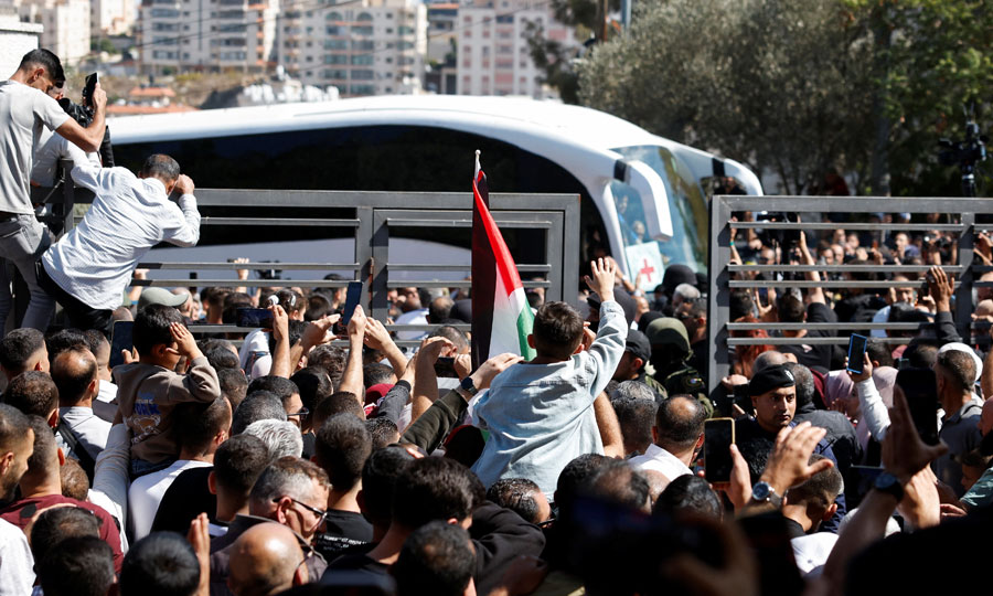 Πλήθη ανθρώπων έχουν συγκεντρωθεί έξω από το νοσοκομείο Νάσερ στη Χαν Γιούνις, στη νότια Γάζα, κρατώντας παλαιστινιακές σημαίες και φωτογραφίες συγγενών τους. Οι δρόμοι γύρω από το νοσοκομείο είναι γεμάτοι με οικογένειες που περιμένουν να αγκαλιάσουν τους δικούς τους μετά από χρόνια κράτησης.