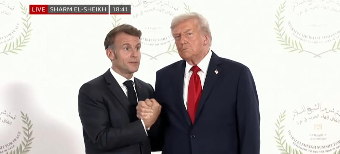 Trump and Macron shake hands for 30 seconds straight, with a lot of back and forth.pic.twitter.com/Ca3Nm25YIm — Clash Report (@clashreport) October 13, 2025