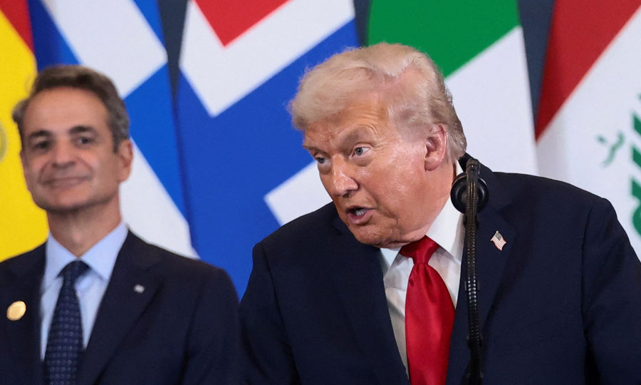 Ο πρόεδρος των ΗΠΑ Ντόναλντ Τραμπ απηύθυνε δηλώσεις παρουσία του Έλληνα πρωθυπουργού Κυριάκου Μητσοτάκη, μετά την επίσημη υπογραφή της πρώτης φάσης της συμφωνίας εκεχειρίας μεταξύ Ισραήλ και Χαμάς, στο πλαίσιο της διεθνούς συνόδου κορυφής για τον τερματισμό του πολέμου στη Γάζα, στο Σαρμ ελ-Σέιχ της Αιγύπτου.