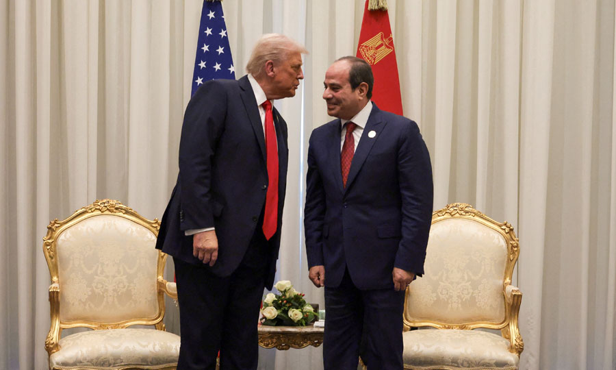 Ντόναλντ Τραμπ και Αμπντέλ Φατάχ αλ-Σίσι συμμετείχαν στη σύνοδο παγκόσμιων ηγετών στο Σαρμ ελ-Σέιχ, με αντικείμενο τον τερματισμό του πολέμου στη Γάζα, στο πλαίσιο της αμερικανικής μεσολάβησης για την ανταλλαγή ομήρων και κρατουμένων και της συμφωνίας εκεχειρίας μεταξύ Ισραήλ και Χαμάς.