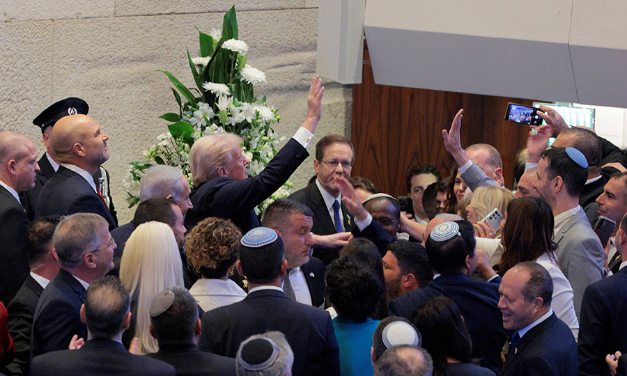 Ο πρόεδρος των ΗΠΑ Ντόναλντ Τραμπ βρίσκεται καθ' οδόν προς την Κνεσέτ στην Ιερουσαλήμ. Επιβαίνει στο θωρακισμένο προεδρικό του όχημα, γνωστό ως «Το Τέρας», μαζί με τον Ισραηλινό πρωθυπουργό Μπέντζαμιν Νετανιάχου και τη σύζυγό του Σάρα.