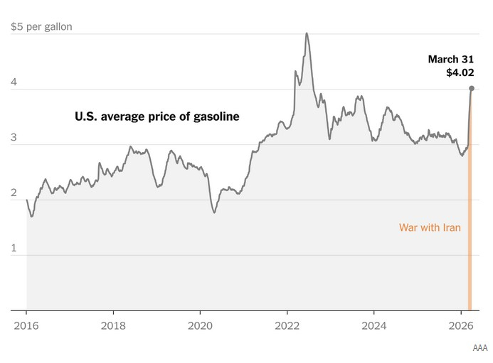 Η μέση τιμή διαμορφώθηκε στα 4,01 δολάρια, σύμφωνα με στοιχεία της AAA, επαναφέροντας μνήμες από την ενεργειακή κρίση του 2022, όταν οι τιμές είχαν ξεπεράσει τα 5 δολάρια.