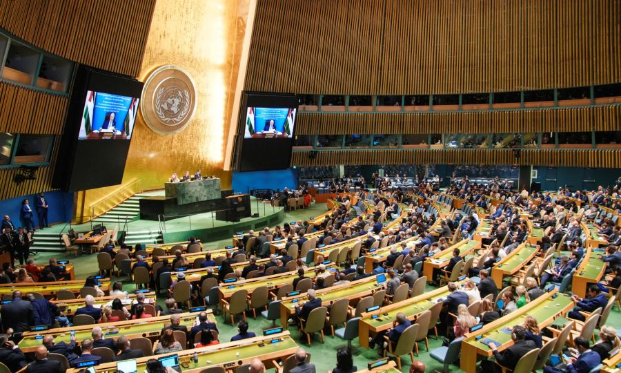 «Καλούμε όσους δεν το έχουν πράξει ακόμη, να το κάνουν», δήλωσε ο πρόεδρος της Παλαιστινιακής Αρχής, Μαχμούντ Αμπάς μιλώντας στη σύνοδο μέσω βιντεοσύνδεσης, καθώς οι ΗΠΑ δεν του παρείχαν βίζα για να μπορέσει να παραστεί διά ζώσης.