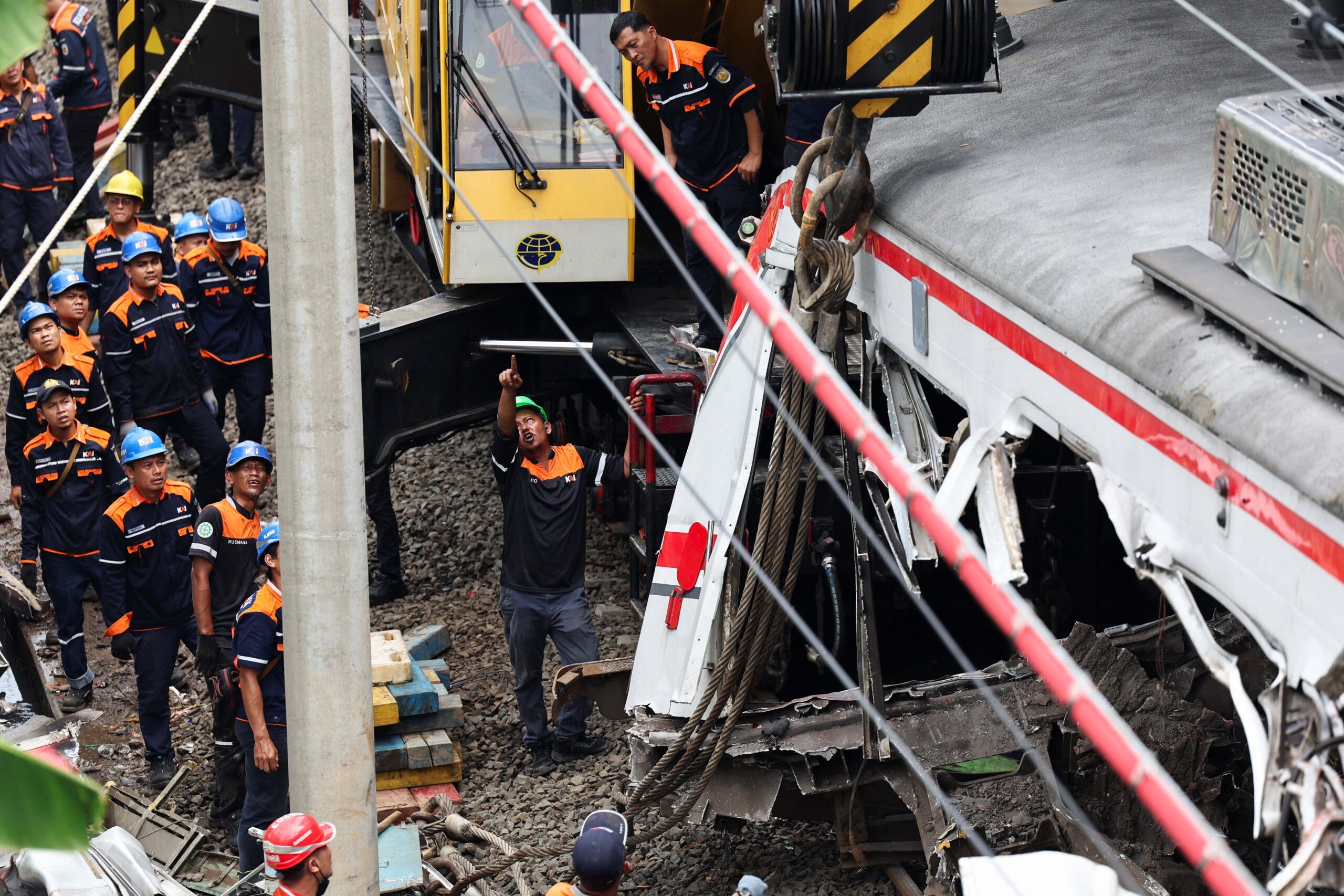 Τεχνικοί εργάζονται στο σημείο έπειτα από τη φονική σύγκρουση (REUTERS/Willy Kurniawan).