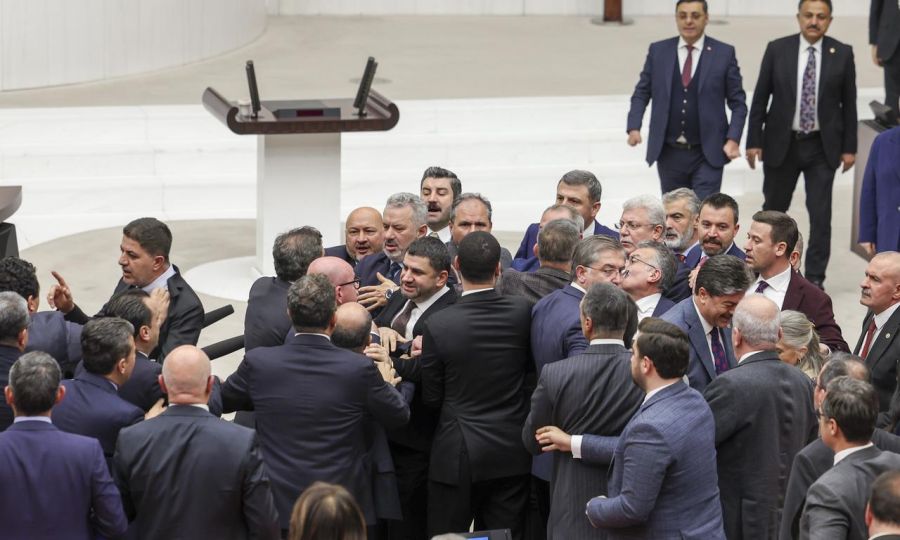Στα χέρια πιάστηκαν Τούρκοι βουλευτές το βράδυ της Κυριακής, κατά την τελευταία ημέρα συζήτησης του προϋπολογισμού, ανταλλάσσοντας μπουνιές και βρισιές, σε ένα γενικευμένο επεισόδιο που διήρκησε περί τα 10 λεπτά.Συγκεκριμένα, βουλευτές του κυβερνώντος ΑΚΡ συνεπλάκησαν με συναδέλφους τους του Ρεπουμπλικανικού Λαϊκού κόμματος (CHP), με αφορμή τις αγροτικές εξαγγελίες.Η συμπλοκή ξεκίνησε μετά από μια έντονη λογομαχία μεταξύ του βουλευτή του ΑΚΡ Μουσταφά Βαράνκ και του αναπληρωτή προέδρου της Κ.Ο του CHP, ΧΚΠ Γκοκάν Γκουναϊντίν.