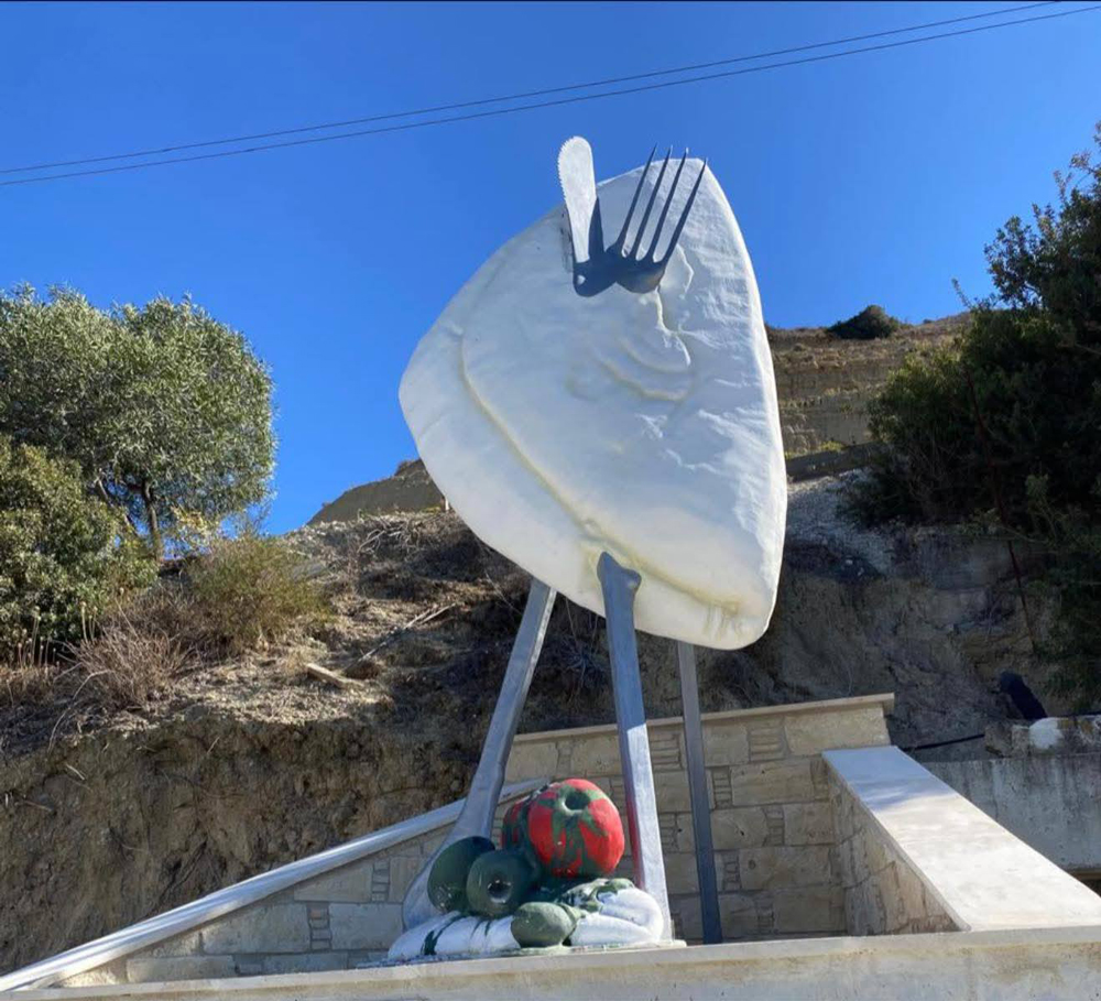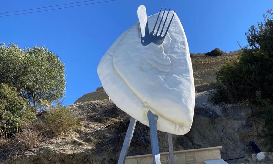 Μετά το μνημείο με την πατάτα στην Ξυλοφάγου, το Πισσούρι απέκτησε γλυπτό χαλουμιού, το οποίο έγινε viral τις τελευταίες μέρες.
