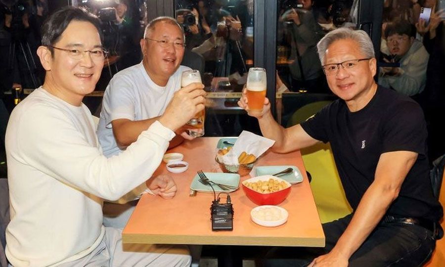 Ο διευθύνων σύμβουλος της πολυτιμότερης εταιρείας στον κόσμο, της Nvidia, Jensen Huang, εμφανίστηκε σε ένα μαγαζί που σερβίρει κοτόπουλο και μπύρα στη Σεούλ μαζί με τους CEOs δύο ακόμα τεχνολογικών γιγάντων της Νότιας Κορέας: Τον πρόεδρο της Samsung Electronics, Lee Jae-yong, και τον εκτελεστικό πρόεδρο της Hyundai Motor Group, Chung Eui-sun.
