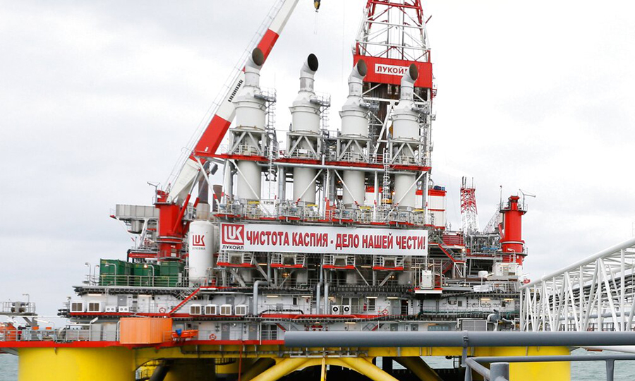 Στην Κασπία μία από τις πλατφόρμες της Lukoil που ασχολείται με την έρευνα, παραγωγή, διύλιση, εμπορία και διανομή πετρελαίου και φυσικού αερίου στη Ρωσία και διεθνώς – Φωτ.: AP Photo/RIA-Novosti, Dmitry Astakhov, Government Press Service