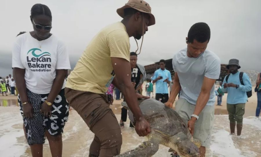 ΠΕΡΙΒΑΛΛΟΝ Ομάδα προστασίας διασώζει θαλάσσιες χελώνες & ανταμείβει τους ψαράδες Περιβαλλοντολόγοι και φοιτητές ζητωκραύγασαν, καθώς τρεις διασωθείσες θαλάσσιες χελώνες, οι οποίες θεωρούνται απειλούμενες σε αυτή την περιοχή του κόσμου, επέστρεψαν στη θάλασσα από ιδιωτική παραλία στη μεγαλύτερη πόλη της Νιγηρίας, το Λάγος.