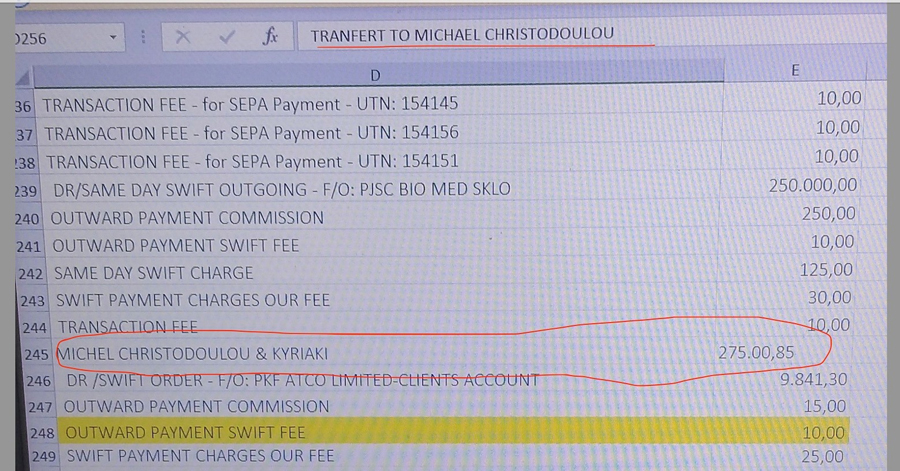 Στην συγκεκριμένη ανάρτηση αναφέρει, «Ετοιμάζομαι για τη σημερινή κατάθεση, στις 10.00. Διαβάζω σήμερα στον Τύπο ότι ορισμένοι από τους εμπλεκόμενους θα με καταγγείλουν στην αστυνομία για πλαστά στοιχεία, και ένας από αυτούς είπε ότι θα ζητήσει και την υποχρεωτική νοσηλεία μου. Για να τελειώνει αυτή η ιστορία περί πλαστών στοιχείων και ψυχιατρείων, είμαι υποχρεωμένος να δημοσιεύσω αυτά: Μεταφορά χρημάτων: Michalis Christodoulou & Kyriaki (που την γνώρισε, είπε, το 2020 αλλά φαίνεται ότι είχαν κοινό λογαριασμό το 2019). Ποσό 275.000 ευρώ μέσω εμπορικής εταιρείας. Μετρητά σε βαλίτσα και χαρτοκιβώτιο, με τη χειρόγραφη σημείωση Σάντη 250.000 Από Μιχάλη».