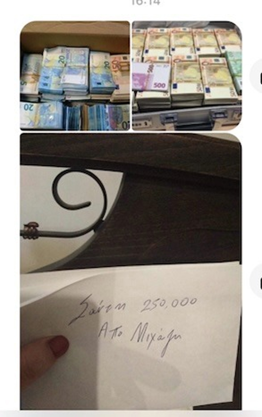 Η ανάρτηση συνοδεύεται από δύο φωτογραφίες, η μεν πρώτη δείχνει ένα αρχείο Εxcel το οποίο παρουσιάζει, όπως αναφέρει, τη μεταφορά των χρημάτων, η δεύτερη που αποτελεί screenshot, παρουσιάζει ένα χειρόγραφο σημείωμα μαζί με δύο φωτογραφίες με μετρητά.