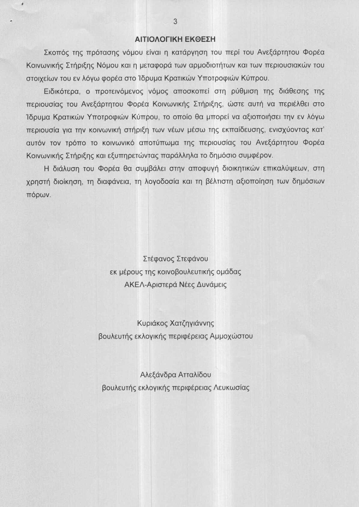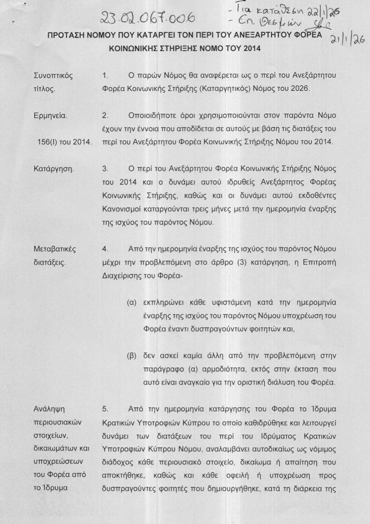 Σε συνέχεια όσων είχε δηλώσει ο Γενικός Γραμματέας του ΑΚΕΛ, Στέφανος Στεφάνου στις 9 Ιανουαρίου 2026, κατά τη διάρκεια σχετικής δημοσιογραφικής διάσκεψης, η πρόταση νόμου που ετοιμάστηκε με πρωτοβουλία του ΑΚΕΛ και την οποία συνυπογράφουν επίσης οι Κυριάκος Χατζηγιάννης και Αλεξάνδρα Ατταλίδου, προνοεί για τη μεταφορά του αποθεματικού και των αρμοδιοτήτων του Φορέα προς το Ίδρυμα Κρατικών Υποτροφιών Κύπρου (ΙΚΥΚ), εντός τριών μηνών από την ημερομηνία ψήφισής της.Αφού ολοκληρώσει όλες τις υφιστάμενες υποχρεώσεις του ο Φορέας, στη συνέχεια θα καταργηθεί και την κοινωνική αποστολή του θα αναλάβει να συνεχίσει το ΙΚΥΚ, ο οποίος λειτουργεί με διαφανείς διαδικασίες.Με την πρόταση νόμου του ΑΚΕΛ διασφαλίζεται η διαφανής, θεσμική και αποτελεσματική αξιοποίηση των δημόσιων πόρων προς όφελος όλων όσων τους έχουν ανάγκη, αναφέρει σε ανακοίνωση του, το κόμμα.
