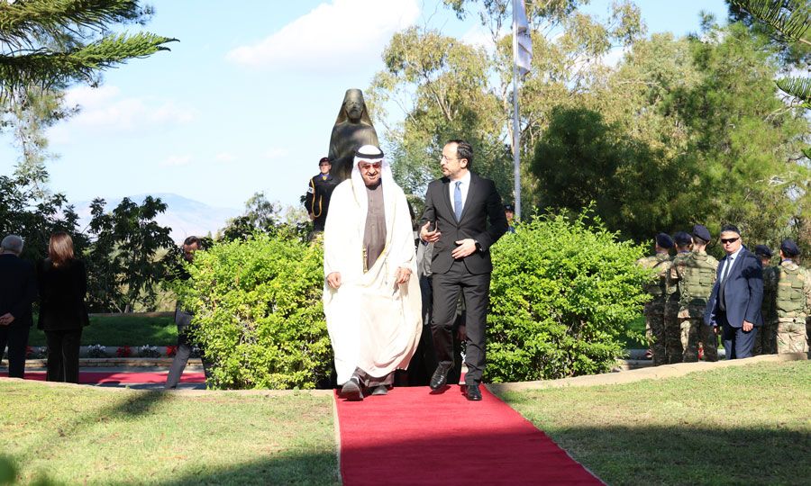 Πραγματοποιεί επίσημη επίσκεψη στην Κύπρο, σήμερα, 14 Δεκεμβρίου, ο Πρόεδρος των Ηνωμένων Αραβικών Εμιράτων Σεΐχης Mohammed bin Zayed al Nahyan, κατόπιν πρόσκλησης του Προέδρου της Δημοκρατίας, Νίκου Χριστοδουλίδη. Σύμφωνα με δηλώσεις του Κυβερνητικού Εκπρόσωπου, Κωνσταντίνου Λετυμπιώτη, «πρόκειται για ιστορική επίσκεψη, την πρώτη του Προέδρου των Ηνωμένων Αραβικών Εμιράτων στην Κύπρο, η οποία επιβεβαιώνει με τον πλέον επίσημο τρόπο τη νέα δυναμική που αναπτύσσεται στις σχέσεις των δυο χωρών αλλά και το στρατηγικό βάθος και την ωριμότητα που έχουν αποκτήσει».