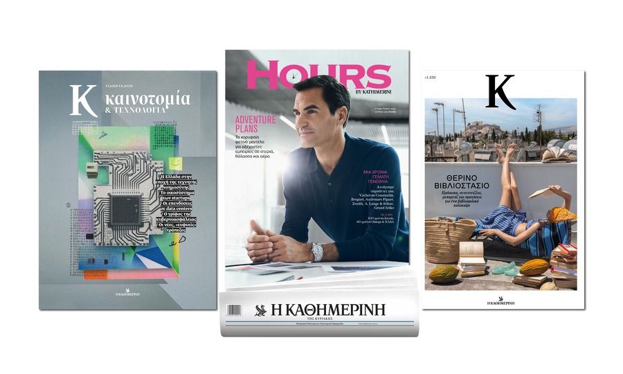 Αυτή την Κυριακή, μαζί με την «Καθημερινή», το περιοδικό HOURS διαλέγει τις επόμενες περιπέτειές του σε στεριά, θάλασσα και αέρα, από τον εντυπωσιακό κόσμο της ωρολογοποιίας. Μαζί του, η ειδική έκδοση «Καινοτομία & Τεχνολογία», καθώς και το νέο τεύχος του «Κ», που είναι γεμάτο βιβλία για τις διακοπές!